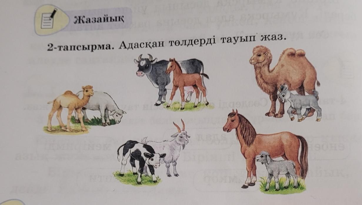 сызасыз наверное и жазасыз: сыйыр, бұзау; қой, құлыншақ; ешкі, лақ; жылқы, құлын; түйе, бота