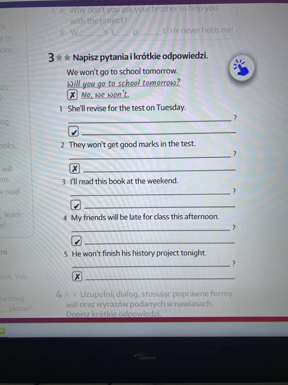 5. Will he finish his history project tonight? No, he won't.