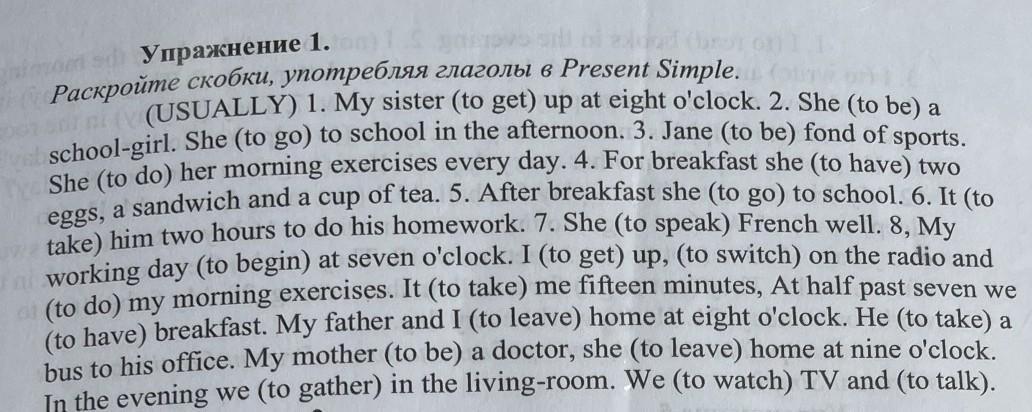 8 begins, get up, switch, do , takes, have, leave, takes, is, leaves, gather, watch, talk