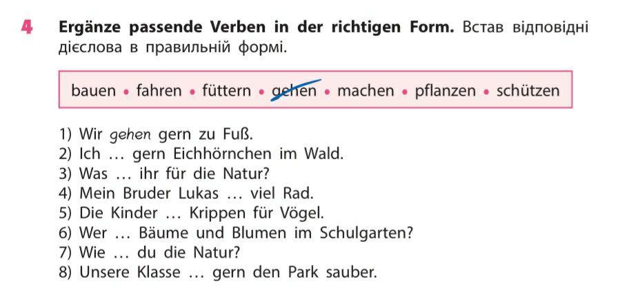 1. Wir gehen gern zu Fuß. - ми любимо іти пішки. -- gehen.