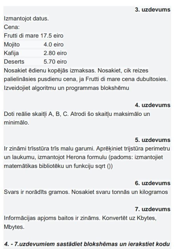 4.-7.uzdevumiem sastādiet blokshēmas un ierakstiet kodu