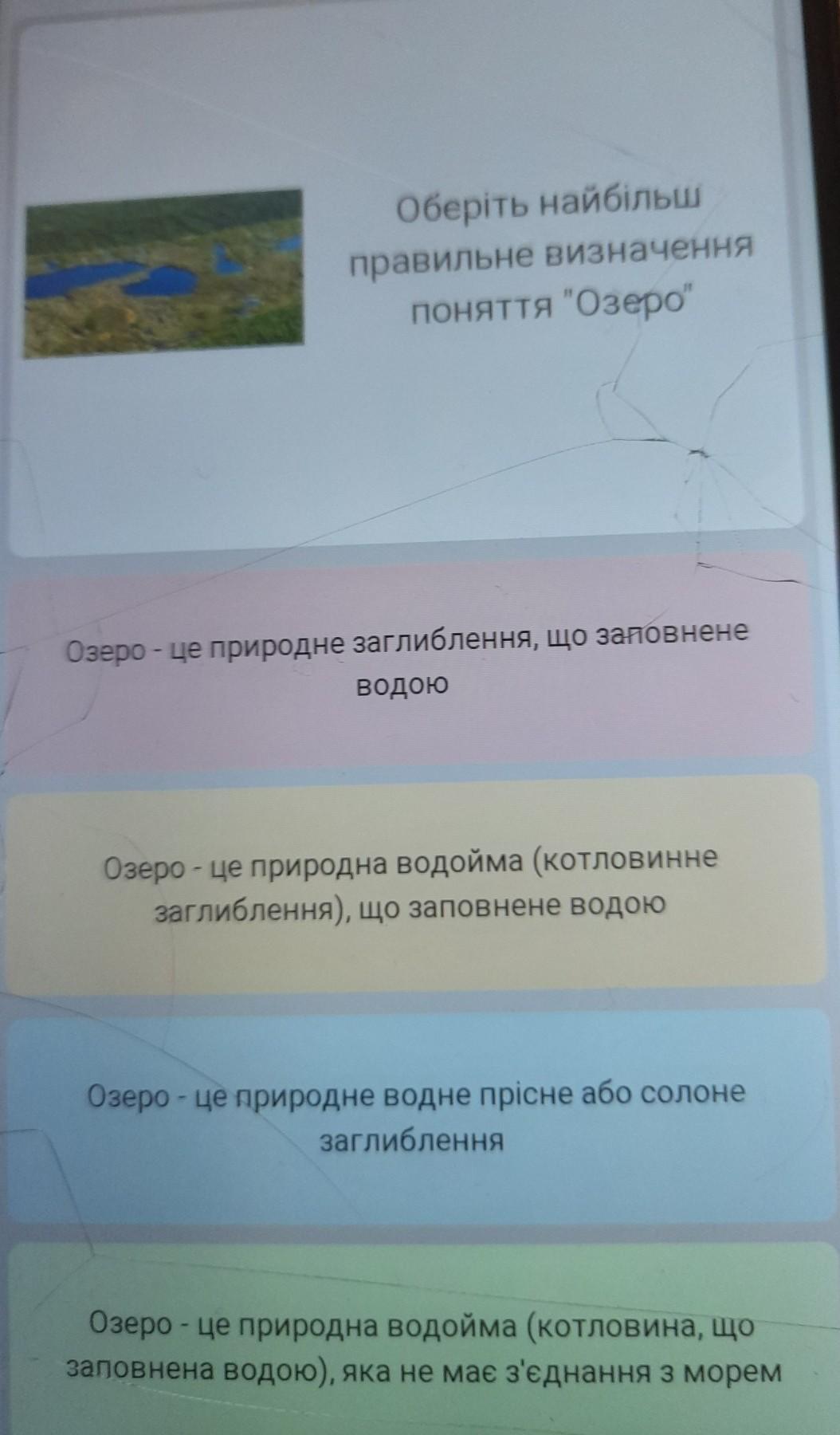 О́зеро - природна водойма (котловина, заповнена водою), яка не має безпосереднього зв'язку з морем чи океаном.