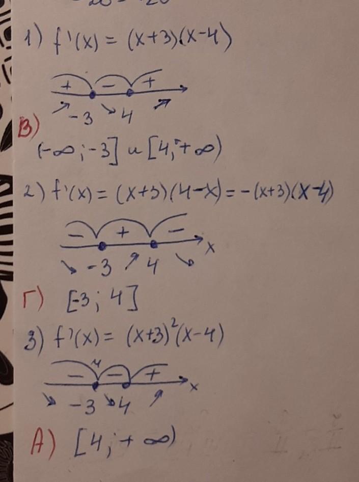 Установіть відповідність між похідними f'(x) функцій (1; -3) та проміжками зростання відповідних їм функцій f(x)