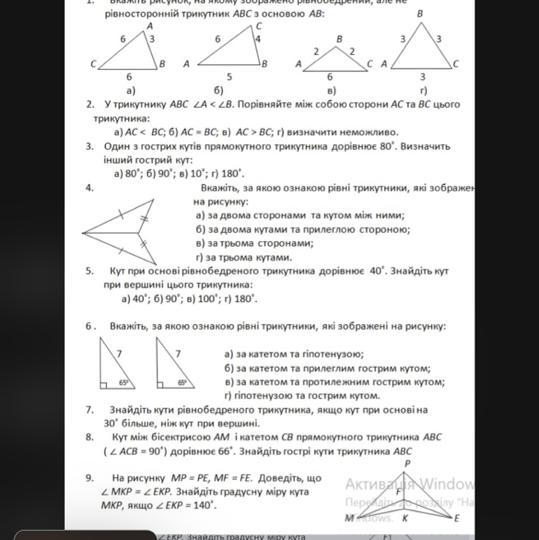 7. Углы при основании равнобедренного треугольнька равны. Сумма внутренних углов треугольника равна 180°. Значит 180°-30°*2=120°- угол в вершине треугольника второй угол при основании также равен 30°,