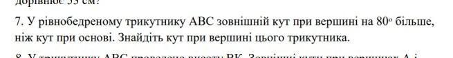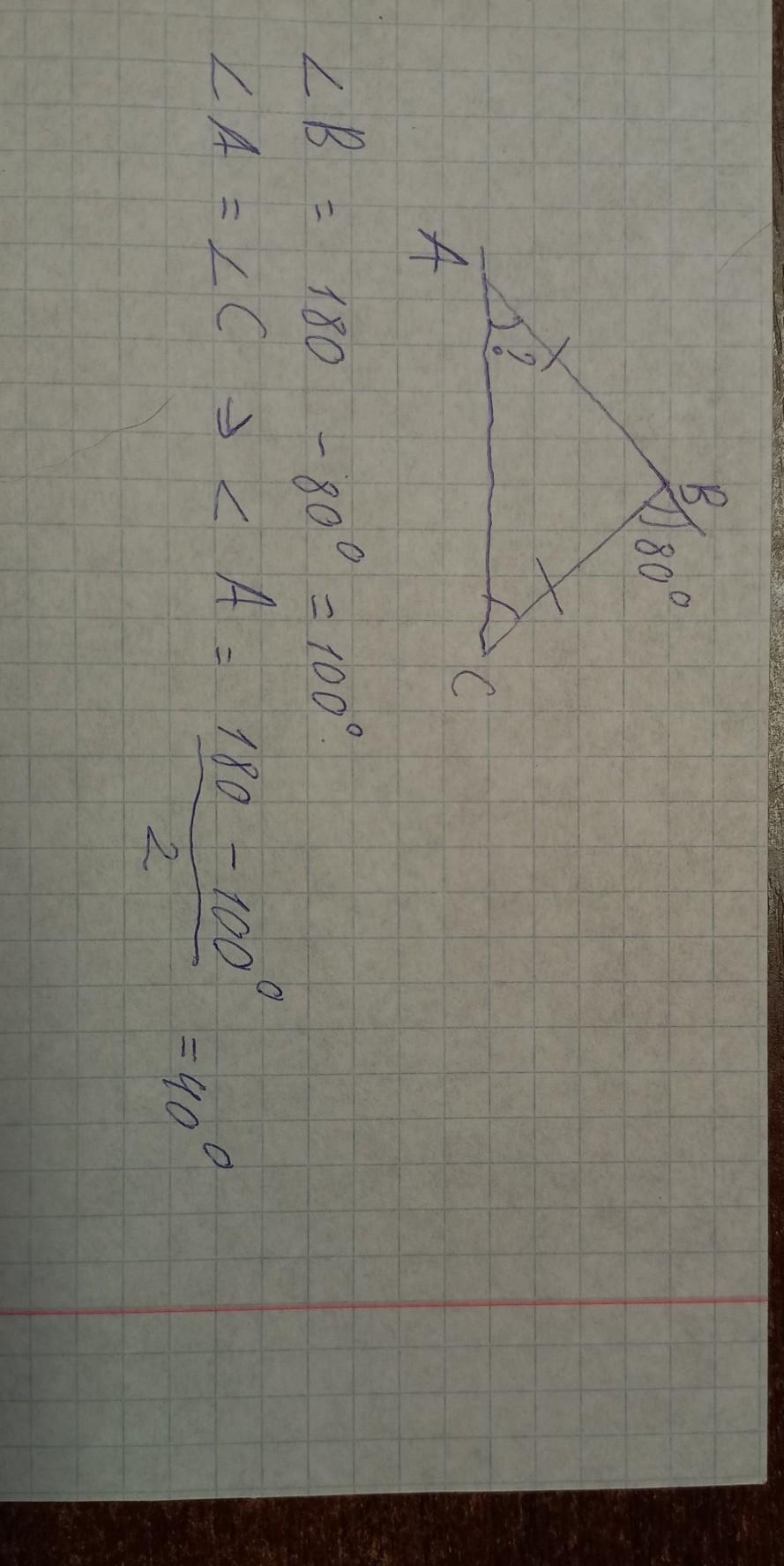 - Відповідь буде Кут при вершині цього трикутника <А=40°