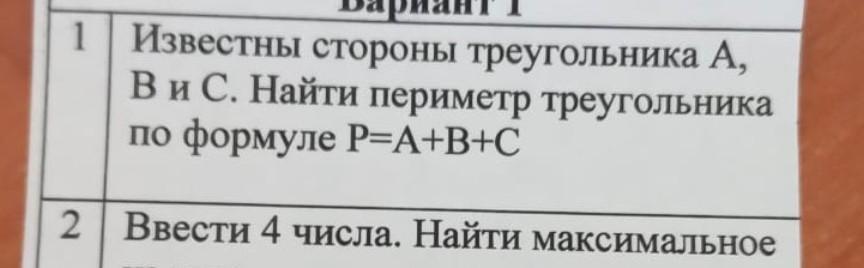 Write ('Введите первую сторону треугольника a: '); readln (a);