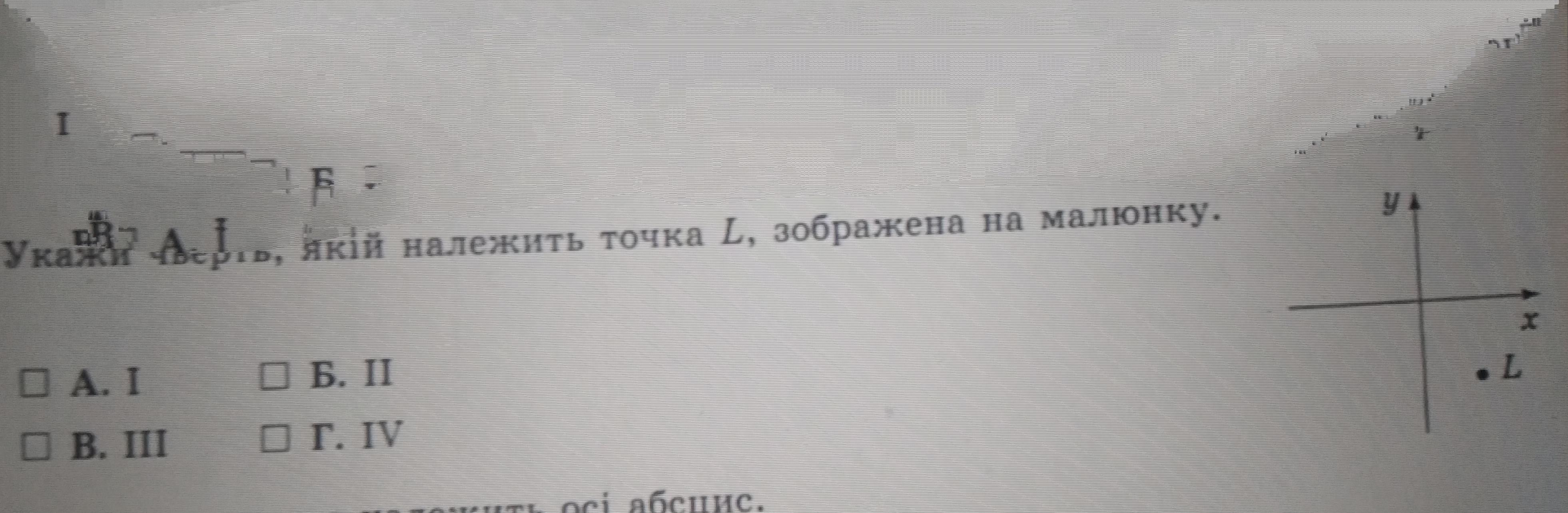 Тому точка L знаходиться у четвертій чверті. (Г)