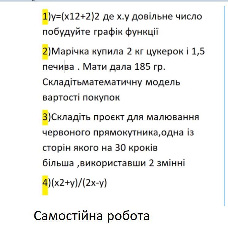 2 Математична модель вартості покупок Марічки складається з суми вартості цукерок та печива, яка складає 2 кг та 1,5 кг відповідно, та додаткової суми 185 грн, яку дала мати. Якщо ціна за 1 кг цукерок дорівнює x грн, а за 1 кг печива - y грн, то математична модель може бути записана як 2x + 1.5y + 185.