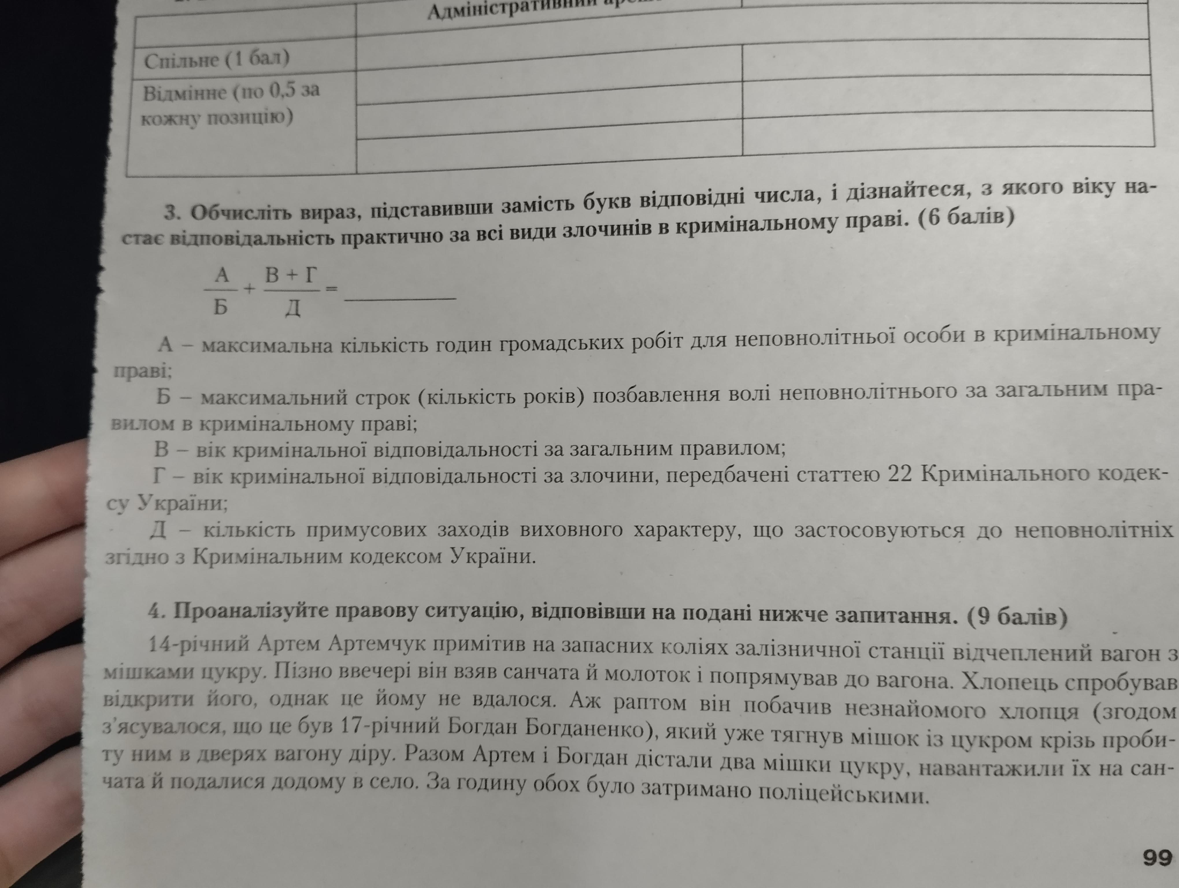 Обчисліть вираз, підставивши замість букв відповідні числа, і дізнайтеся, з якого віку на- стас відповідальність практично за всі види злочинів в кримінальному праві.