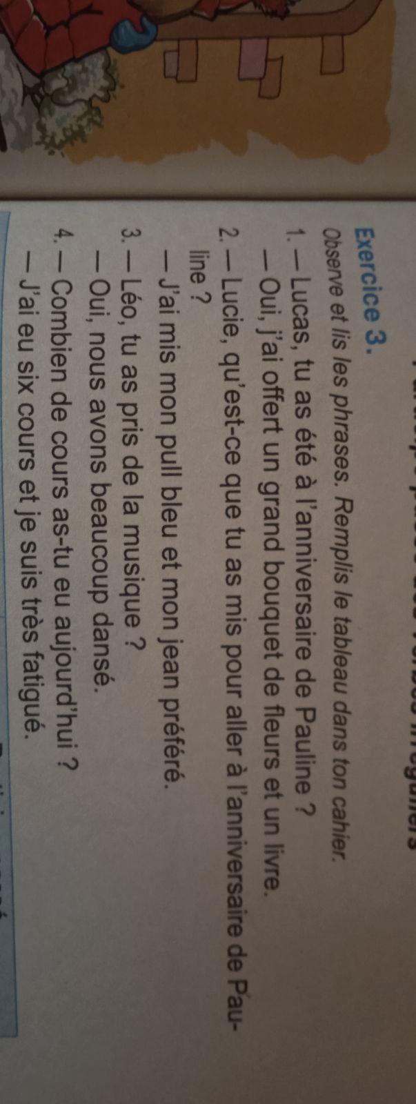 2.Підмет: Lucie, присудок: tu as mis mon pull bleu et mon jean préféré.