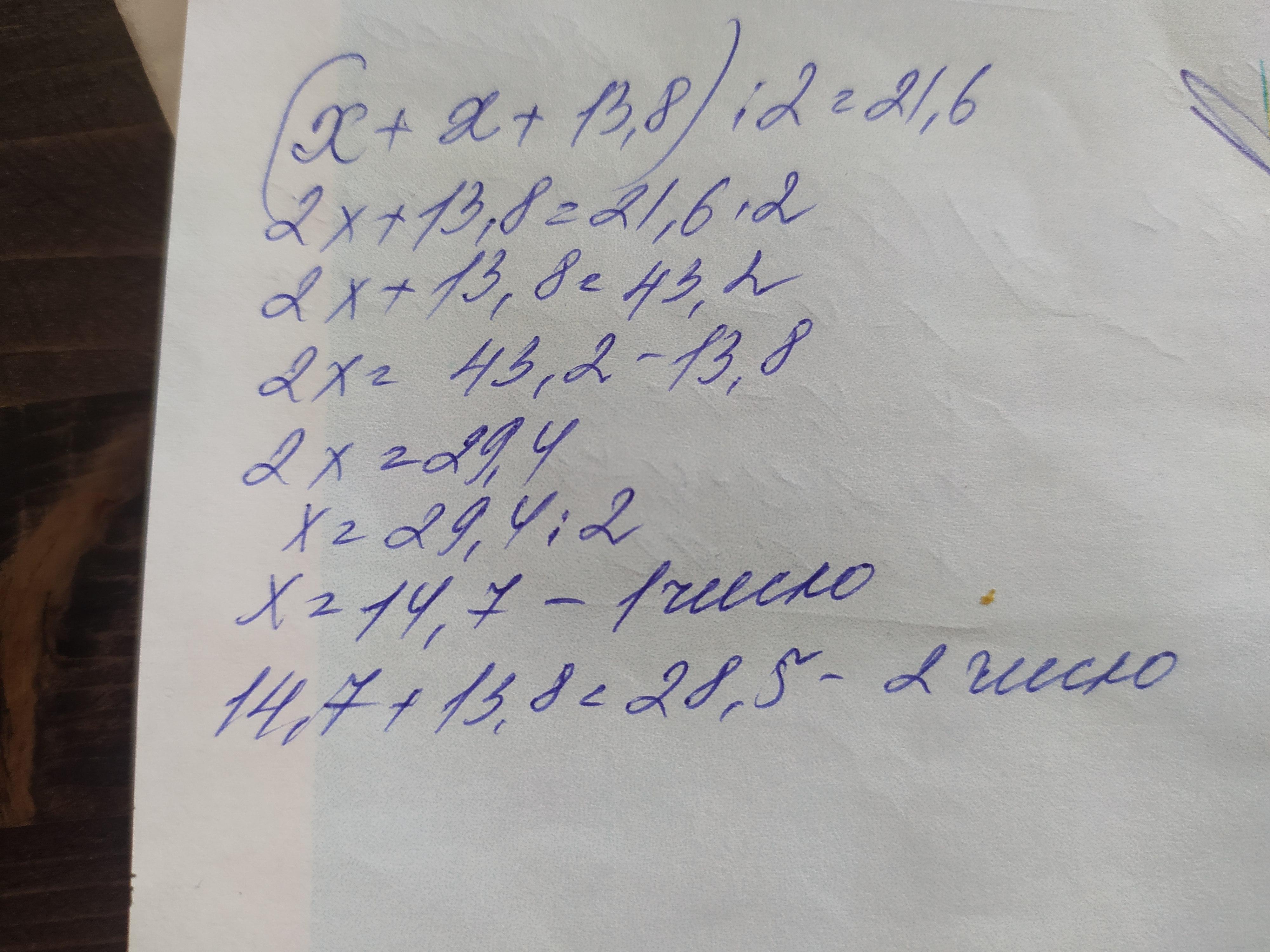 2 число = (х + 13,8) = 14,7 + 13,8 = 28,5
