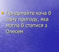 придумайте хоча б одну пригоду, яка могла б статися з Олесем