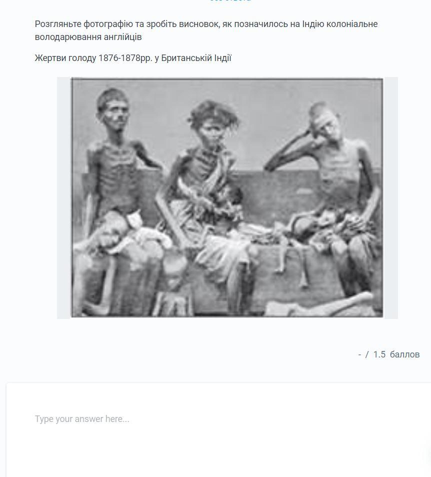 Відповідь: Колоніальне володарювання англійців мало значний вплив на Індію та її населення. Голод був одним з наслідків колоніальної політики.