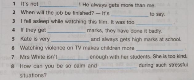 Smart, low, fair, strict, hard, boring, patient, aggressive