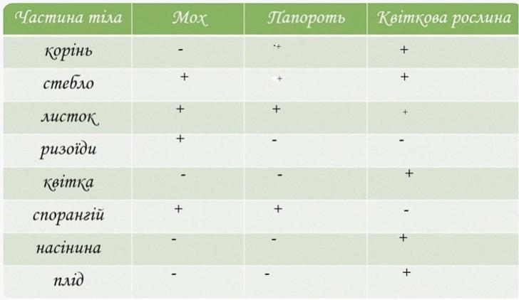 210 Корінь Стебло Листок Ризоїди Квітка частини тіла: Спорангiй Насінина + Mox Папороть Квіткова рослина Плід