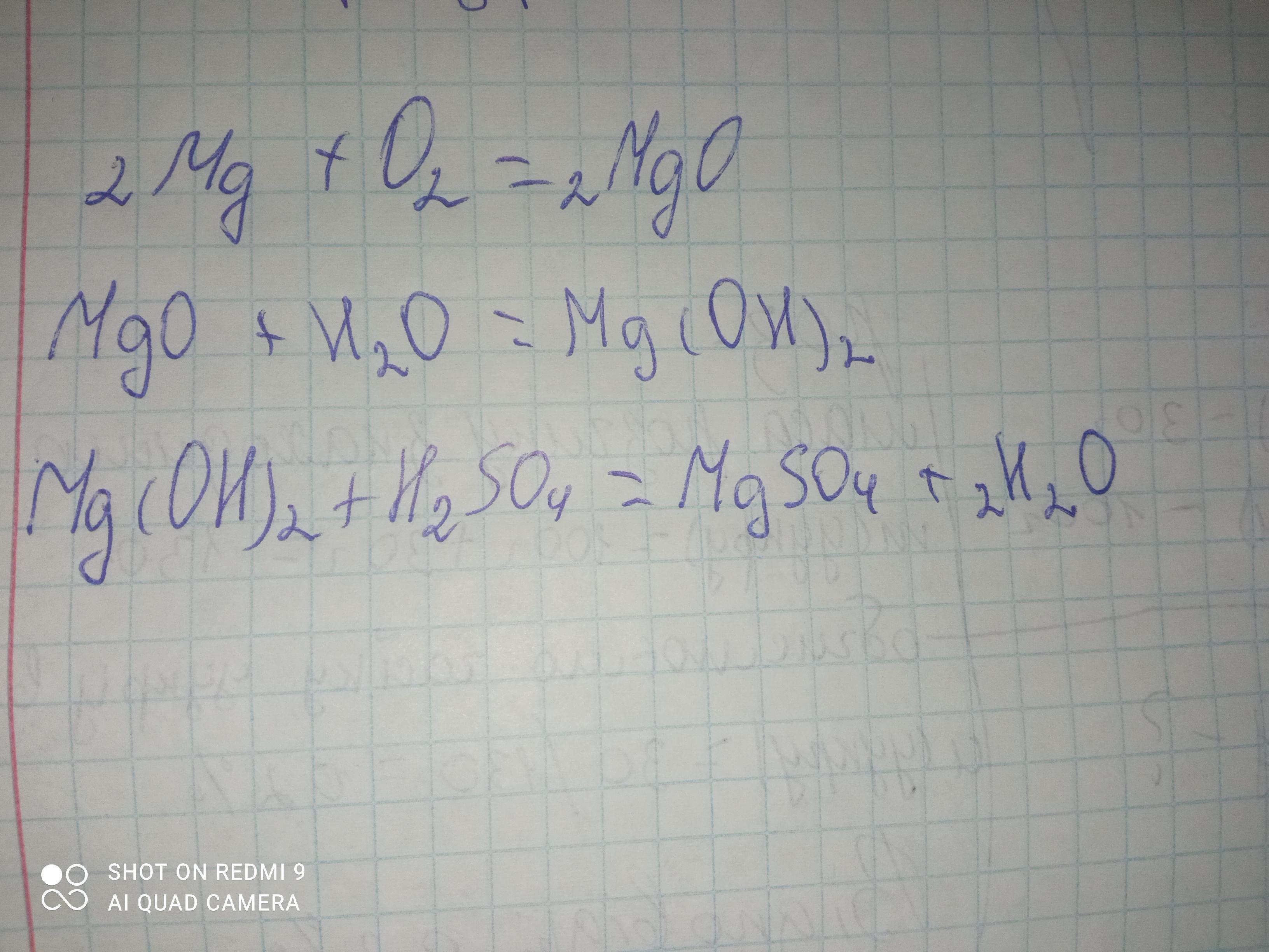 Ответ: Mg превращается в MgSO4 через MgO, Mg(OH)2.