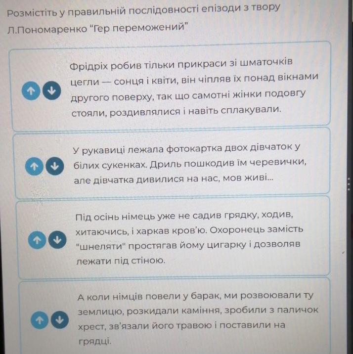 Розмістіть у правильній послідовності епізоди з твору Л.Пономаренко "Гер переможений"
