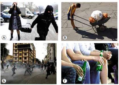 Розгляньте фотографії, визначте характер, вид правопорушень, виділіть їх ознаки і склад.