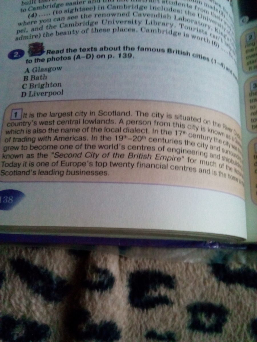 Это крупнейший город в Шотландии. Город расположен на реке..... западных центральных низменностях страны. Люди из города называют его.... , который также именуется на местном диалекте. В 17 веке город был центром торговли с Америкой. В 19 20 веках город и окрестности его выросли и стали одним из мировых центров проектирования и судостроения под именем второго города британской империи для многих викторианцев. Сегодня это один из 20 финансовых европейских центров и место ведущего делового центра Шотландии.