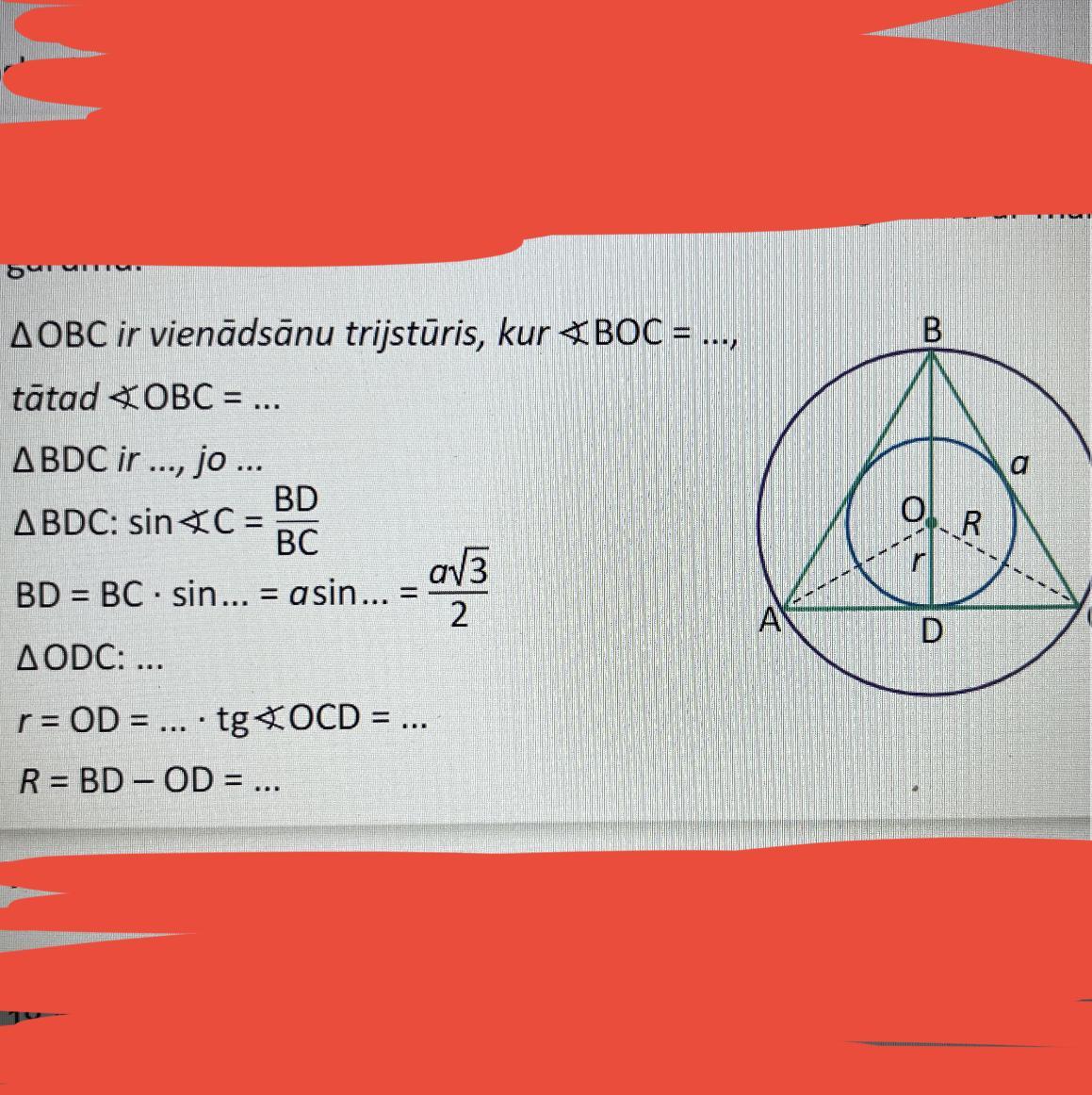 Papildināt teikumus nav grūti, bet Jums bija cits jautājums. Izteikt R un r ar a. To arī var izdarīt , ja zināms ka AB=AC. Tur augšā nekas vairs nav teikts?