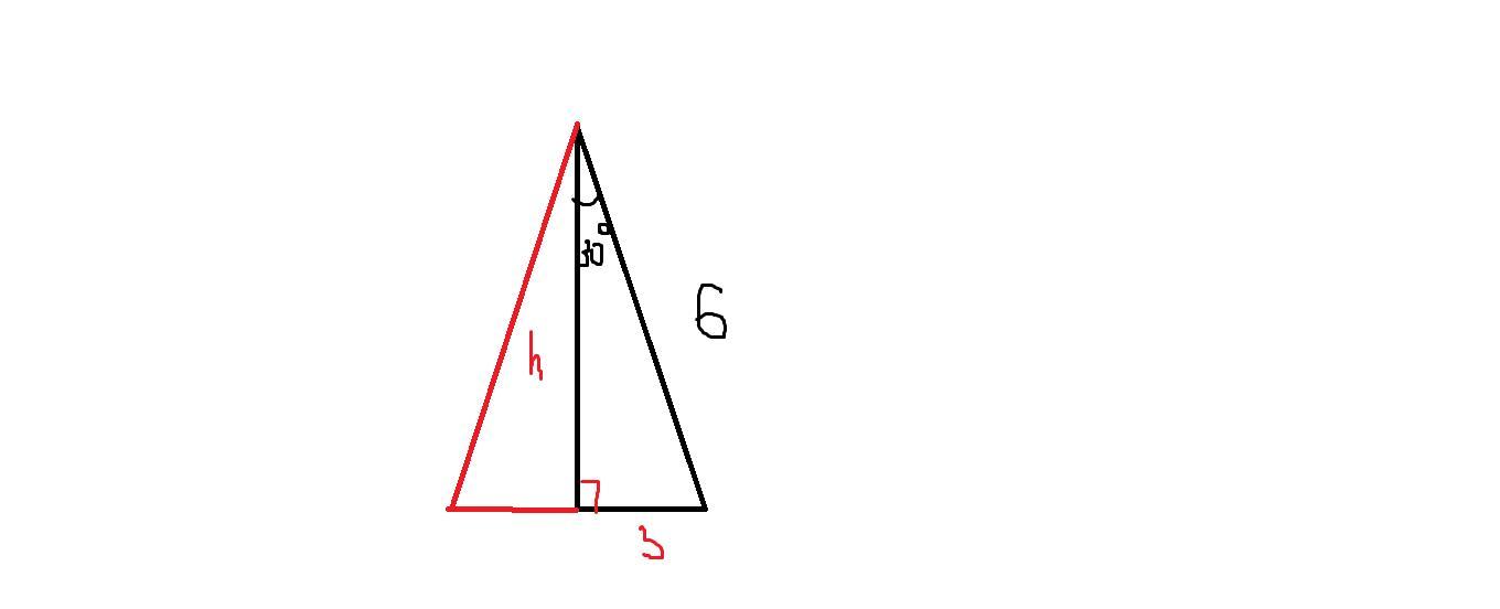 Прямокутний трикутник, гіпотенуза якого дорівнює 6 см, а один із гострих кутів дорівнює 30°, обертається навколо більшого катета. Знайдіть висоту конуса, утвореного внаслідок цього обертання.