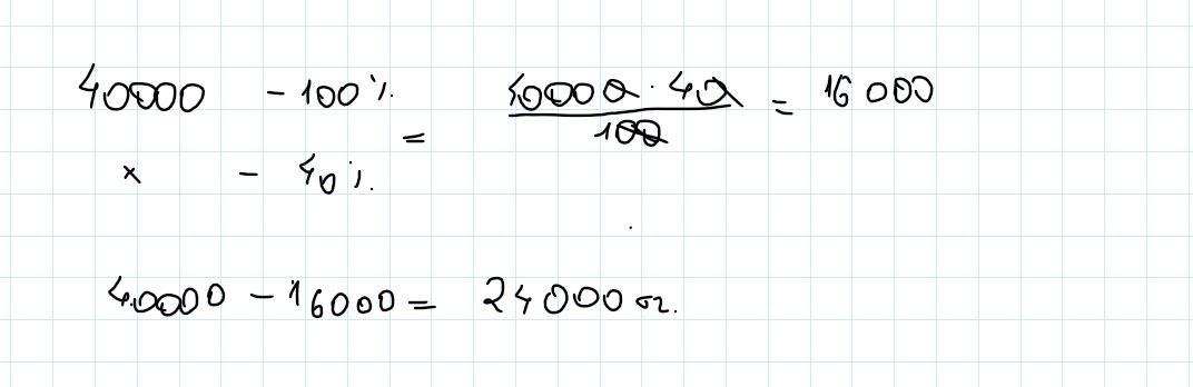 4.Стол стоит 40000 тенге. Во время акции магазин предоставляет на него скидку 40%. Сколько тенге будет стоить стол во время акции