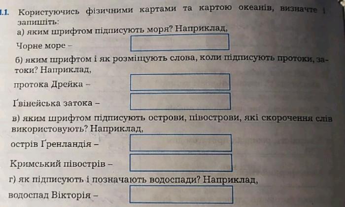 1.1. Користуючись фізичними картами та картою океанів, визначте 1 запишіть: