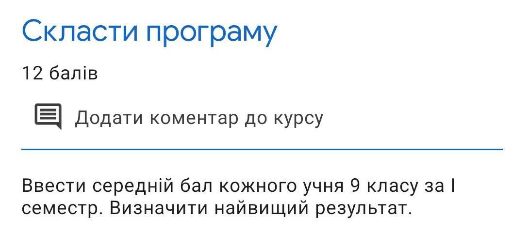 print(f'Самый большой средний бал за 1 семестр у 9 класса это {max(oc)} балов')
