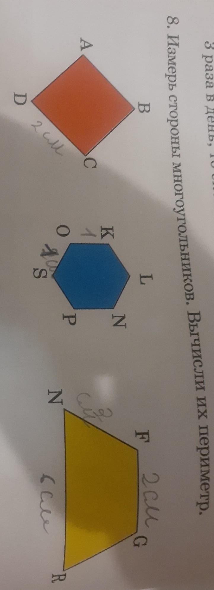 8. Измерь стороны многоугольников. Вычисли их периметр.