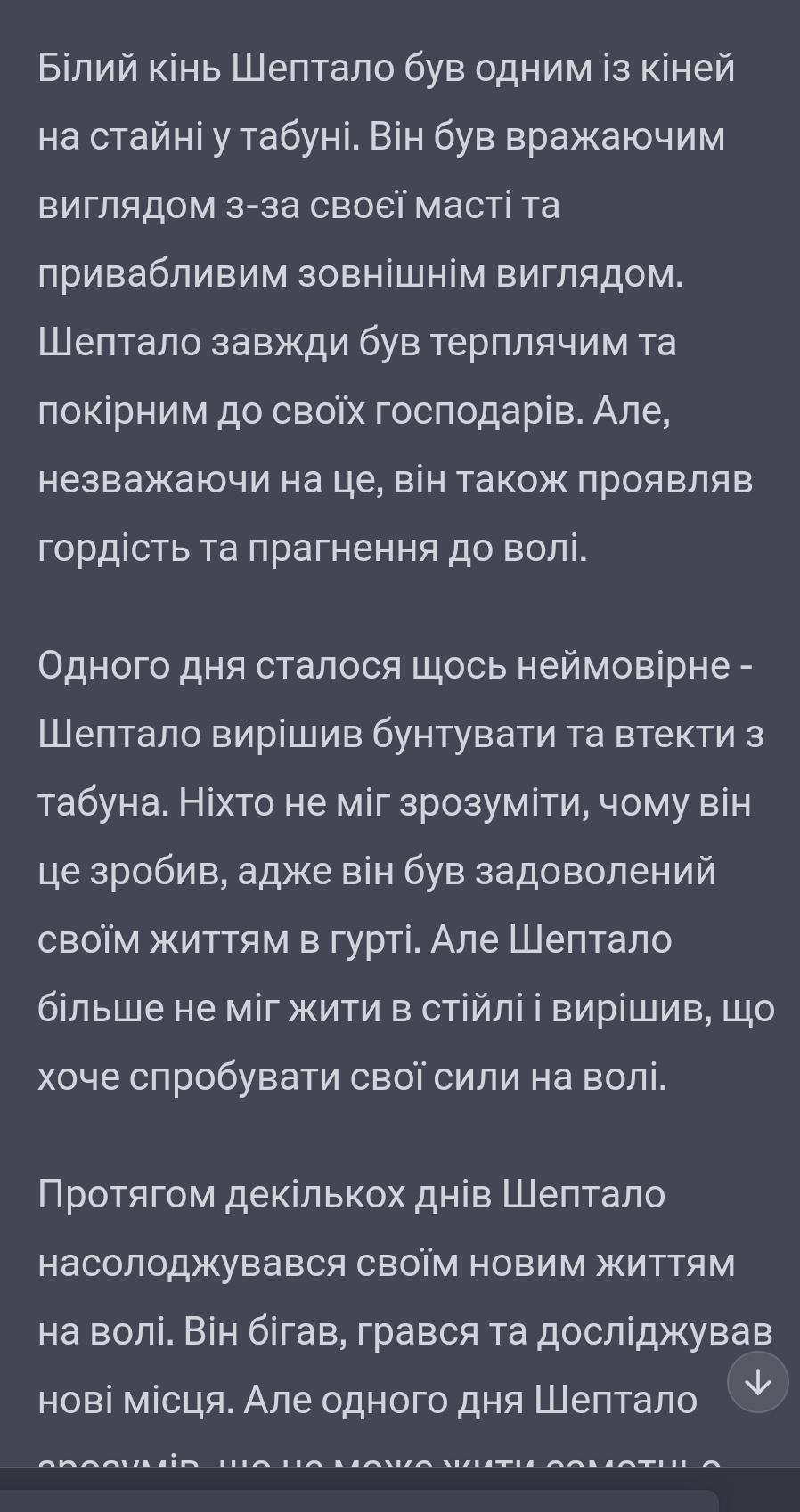 скласти розповідь за планом по оповіданню «Білий кінь Шептало»