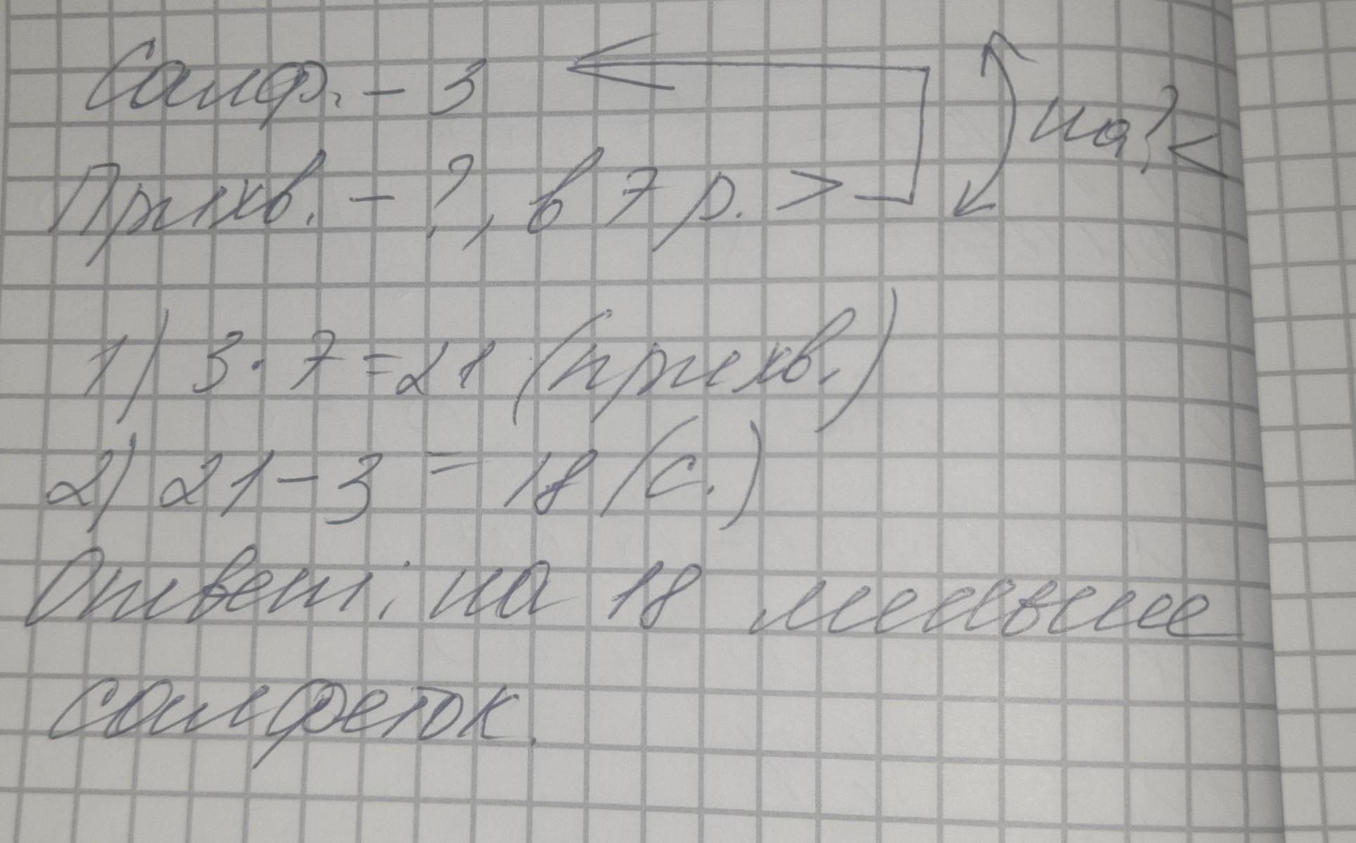 1. Реши задачу. На весенних каникулах Асем связала 3 салфетки, а прихваток - в 7 раз больше. На сколько меньше салфеток, чем прихваток, связала Асем?