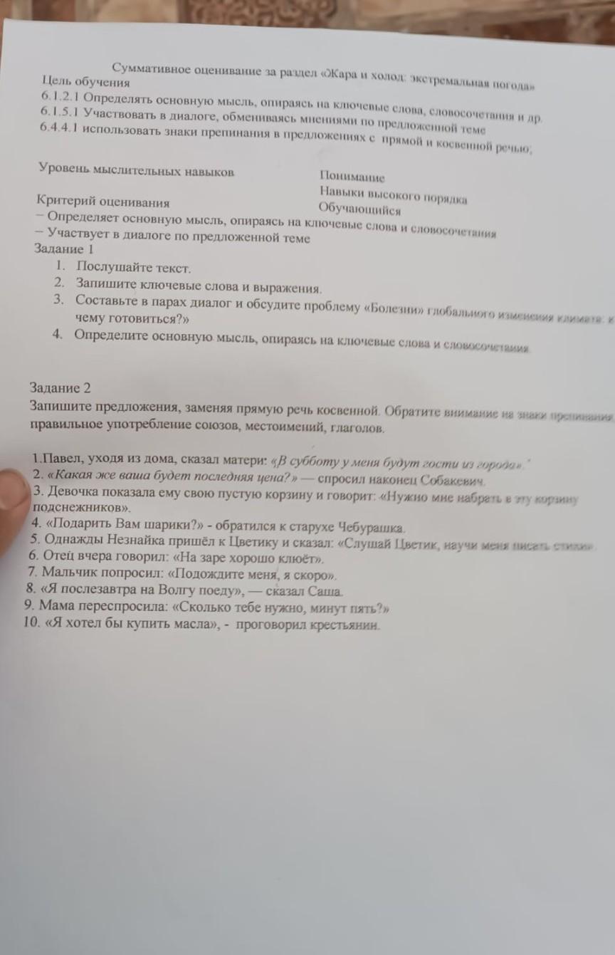 Задание 2 Запишите предложения, заменяя прямую речь косвенной. Обратите внимание на наки препинания правильное употребление союзов, местоимений, глаголов. 1.Павел, уходя из дома, сказал матери: «В субботу у меня будут гости из города. 2. «Какая же ваша будет последняя цена?>> - спросил наконец Собакевич. 3. Девочка показала ему свою пустую корзину и говорит: «Нужно мне набрать в эту корзину подснежников». 4. «Подарить Вам шарики?» - обратился к старухе Чебурашка. 5. Однажды Незнайка пришёл к Цветику и сказал: >. 7. Мальчик попросил: «Подождите меня, я скоро». 8. «Я послезавтра на Волгу поеду», - сказал Саша. 9. Мама переспросила: «Сколько тебе нужно, минут пять?» 10. «Я хотел бы купить масла>>, - проговорил крестьянин.