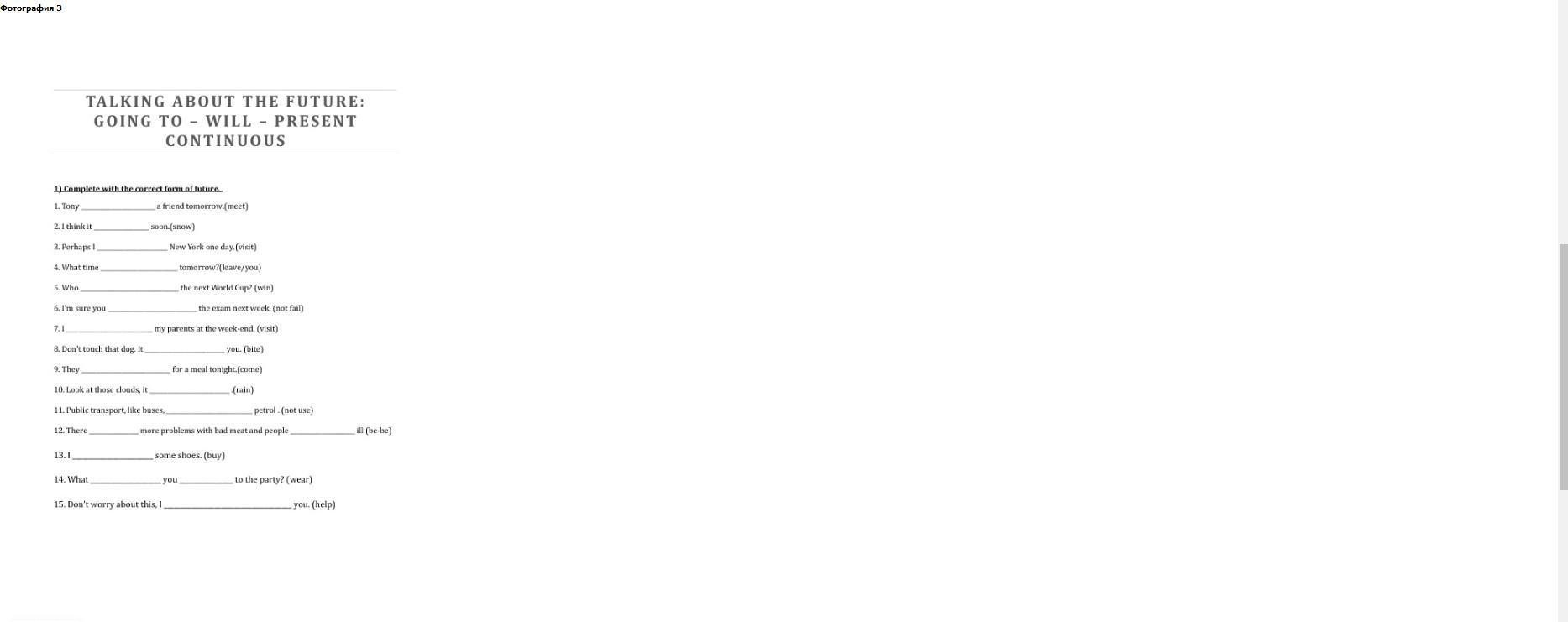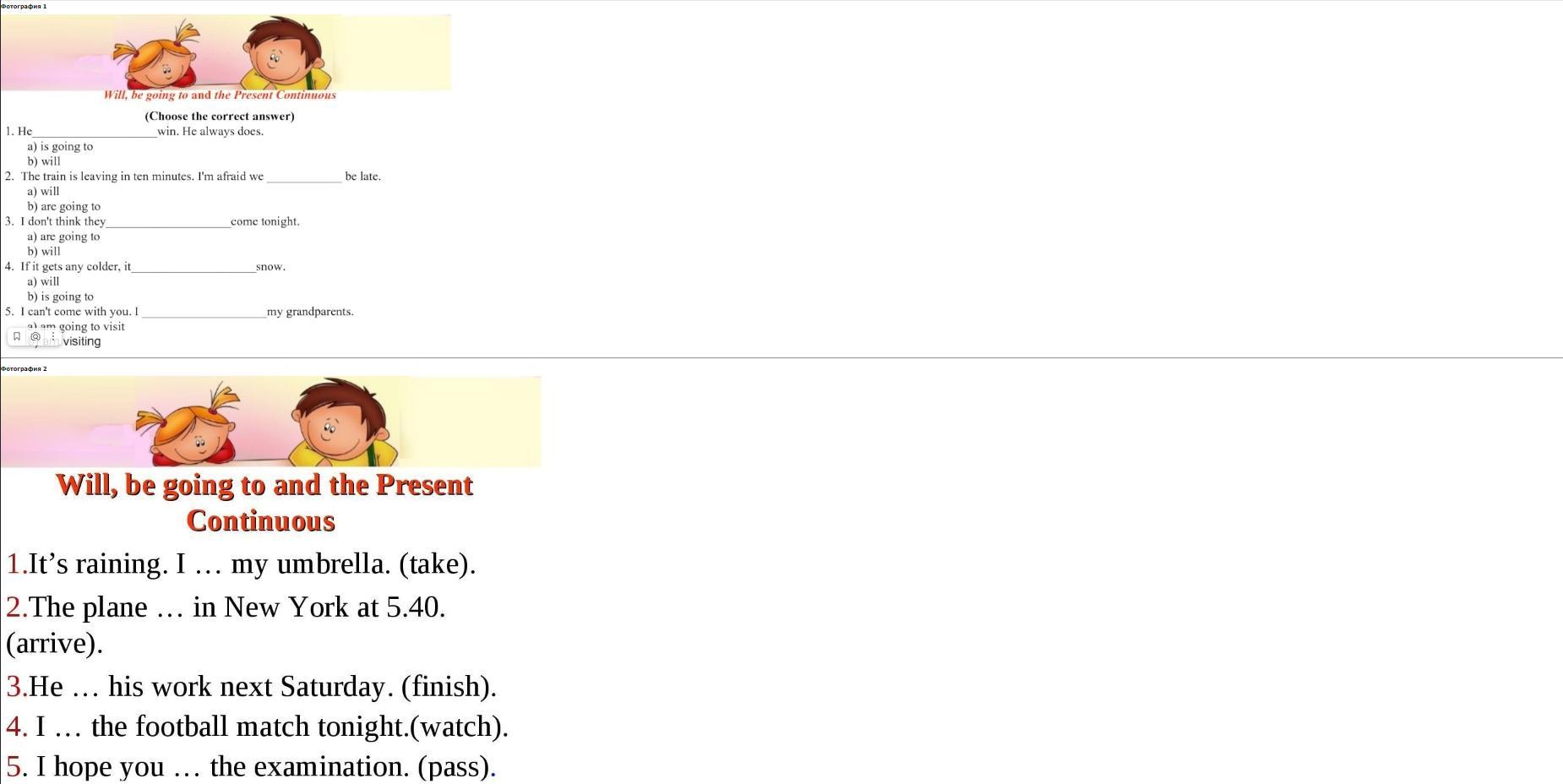 Во втором и третьем заданиях нужно глаголы в скобках поставить в Present Continuous, или to be going to, или Will. помогите пжалуйста