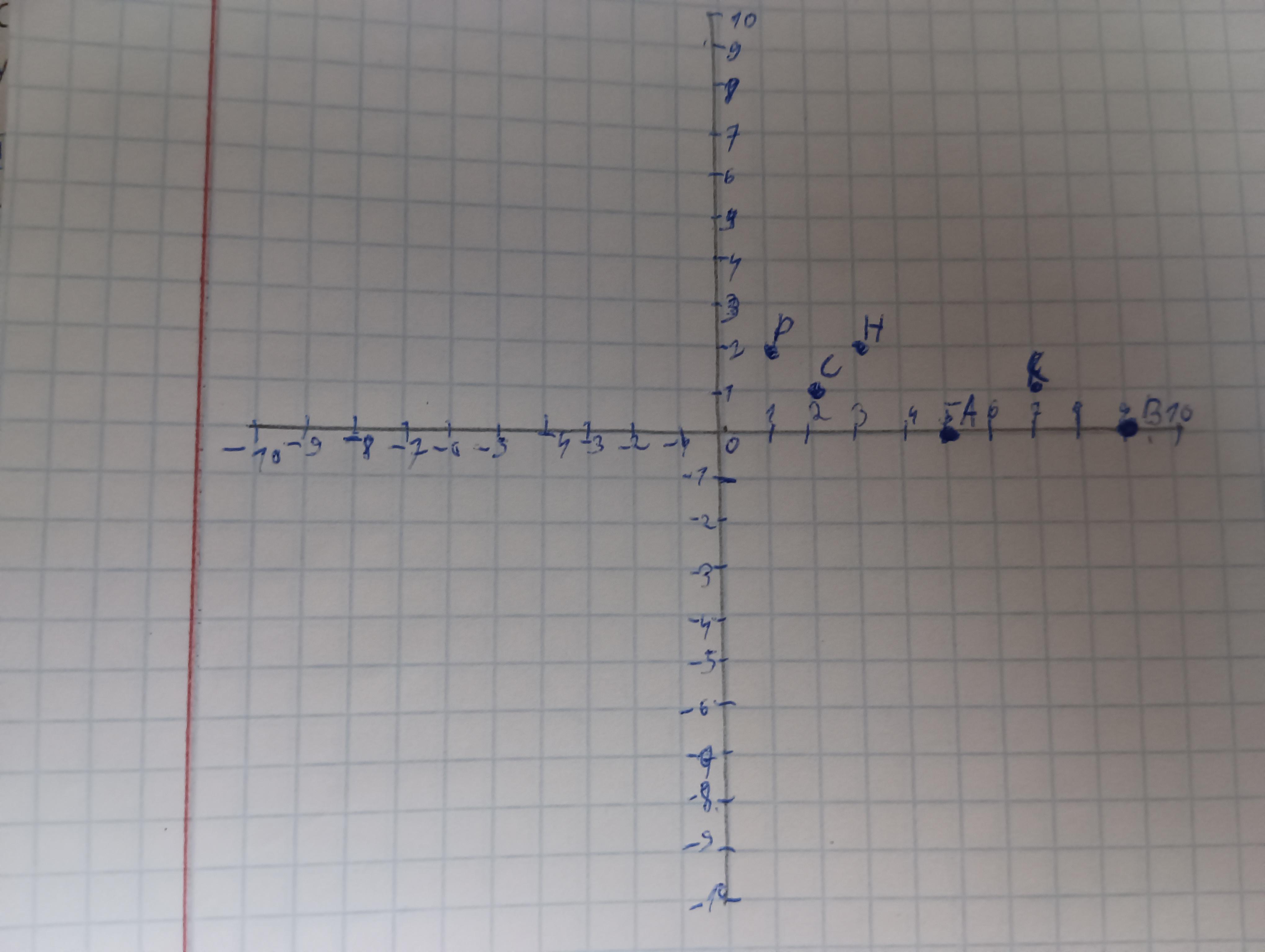 2. Накресли координатну пряму, узявши за одиничний вiдрiзок 10 клітин на координатній прямій наведенi точки. A (0,5); B (0,9); C (1,2); K (1,7); P (2,1); H (2,3).