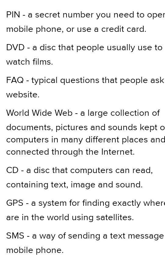 условие : Match the abbreviations with the definitions.
