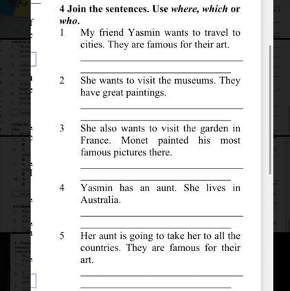 4 Yasmin has an aunt, who lives in Australia