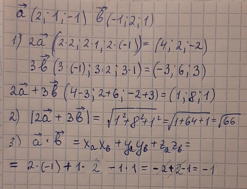 2) |2а+3b|=√1²+8²+1²=√1+64+1=√66