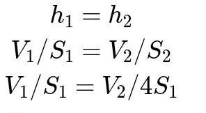 значит установления равновесия второй сосуд нужно залить в 4 раза больше воды чем в 1