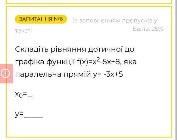 По условию касательная параллельна прямой y=-3x+5, ⇒ коэффициент наклона прямой (значение производной в точке