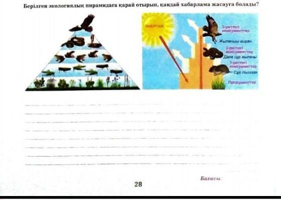 Берілген экологиялык пирамидага карай отырып, кандай хабарлама жасауга болады?50бал