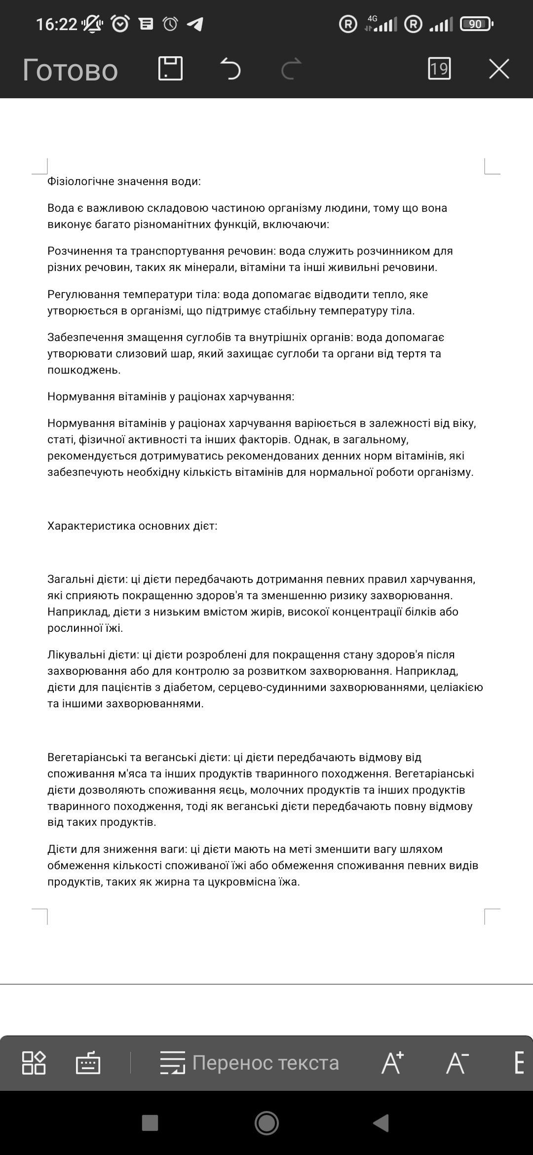 Будь ласка потрібно терміново(( даю 50 балів 1. Фізіологічне значення води. 2. Нормування вітамінів у раціонах харчування 3. Характеристика основних дієт . 4. Поняття про дієтичне харчування специфічна дія продуктів і страв.