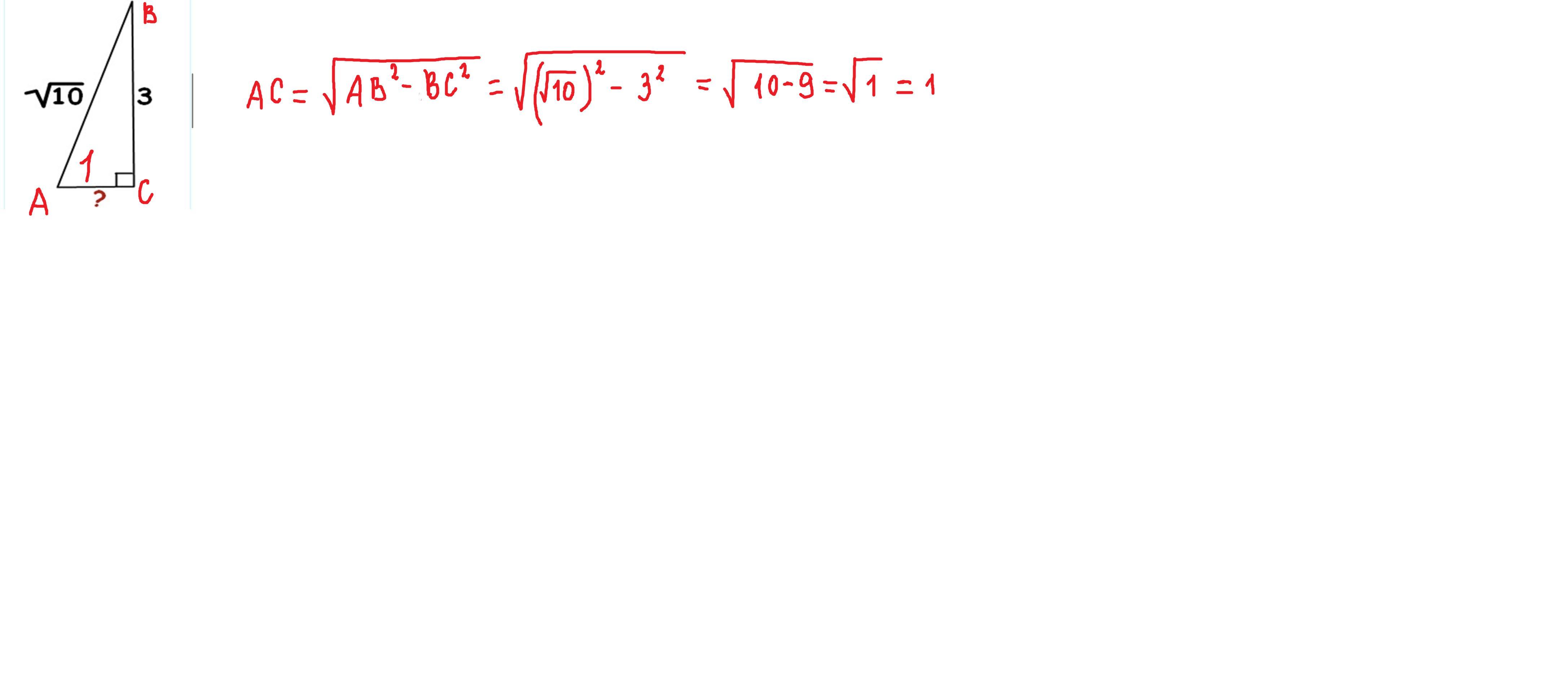 Т.К треугольник прямоугольный ,то по т.Пифагора находим второй катет,он равен 1