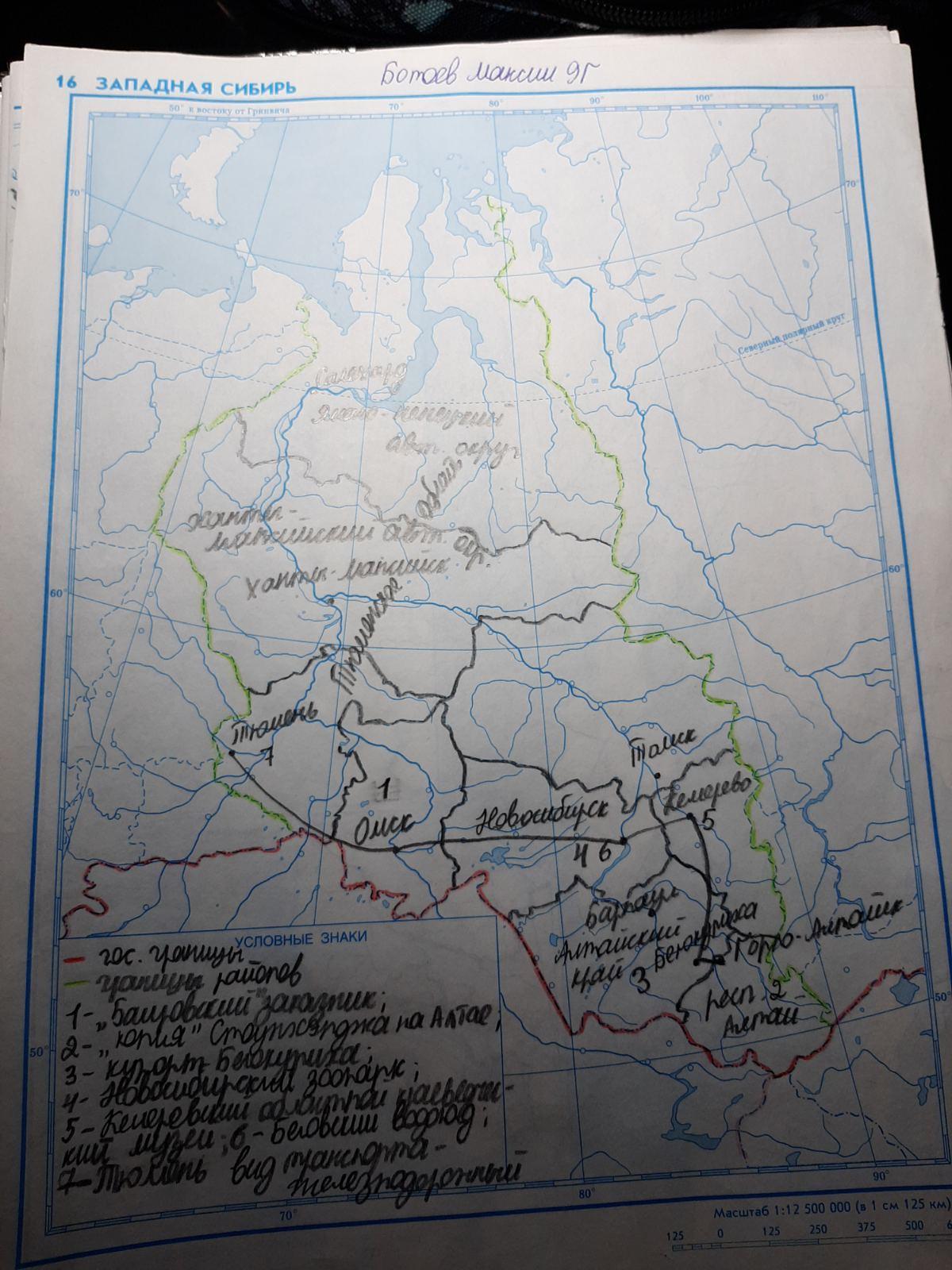 Прошу помогите быстрее!!Разработка по карте туристического маршрута с целью показа наиболее интересных природных и хозяйственных объектов Западной Сибири. Цель: Определить основные природные и хозяйственные объекты Западной Сибири. Продолжить развитие умений комплексного использования географических карт, текста учебника, справочной литературы, отражать результаты работы в знаковой форме. Ход работы: 3. На контурной карте специальными условными знаками отметьте их: Алтайские горы, Новосибирский зоопарк, озеро Байкал, Юганские пещеры, Тобольский кремль, Ледниковый массив Патомский (Распределяйте как вам удобно). 4. Проложите туристический маршрут (соединить их в единый маршрут), указав вид транспорта.