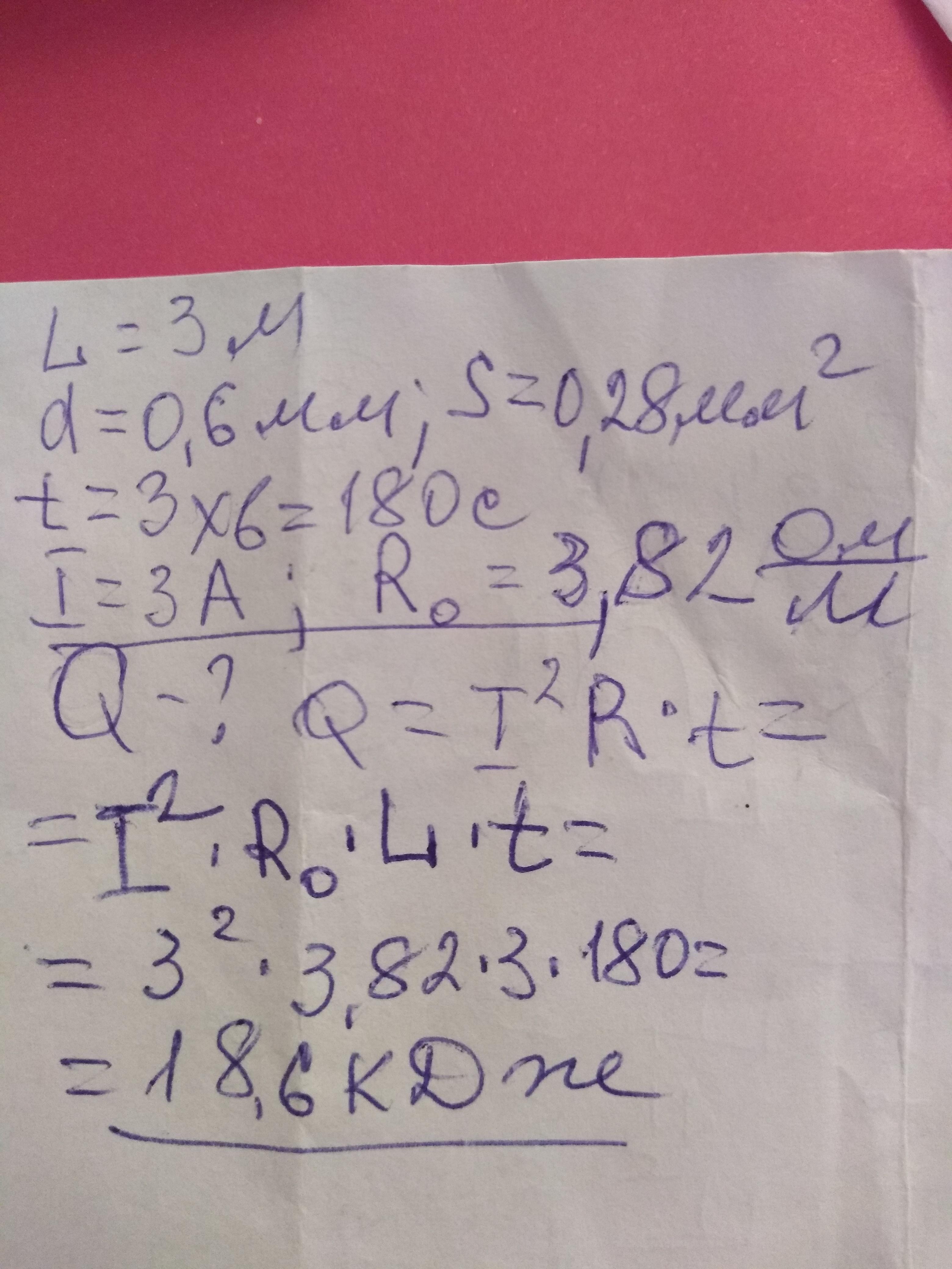 З ніхромового дроту довжиною 3 м і діаметром 0,6 мм виготовлено спіраль, яку увімкнули в електричне коло. Яка кількість теплоти виділиться спіраллю за 3 хв за сили струму в ній 3 А *