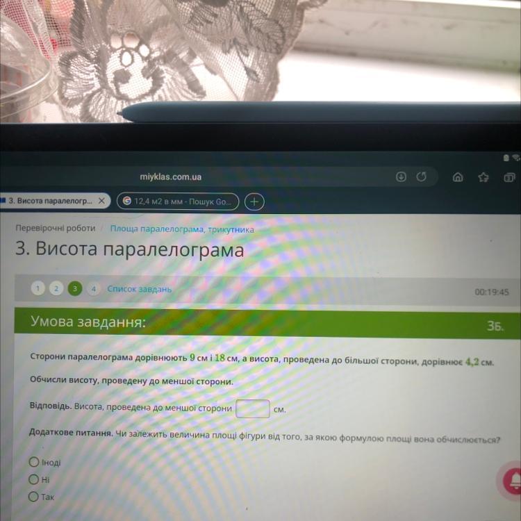 Нехай менша висота - х. Площа обчислюється як добуток сторони на висоту до цієї сторони. Тому ⇒