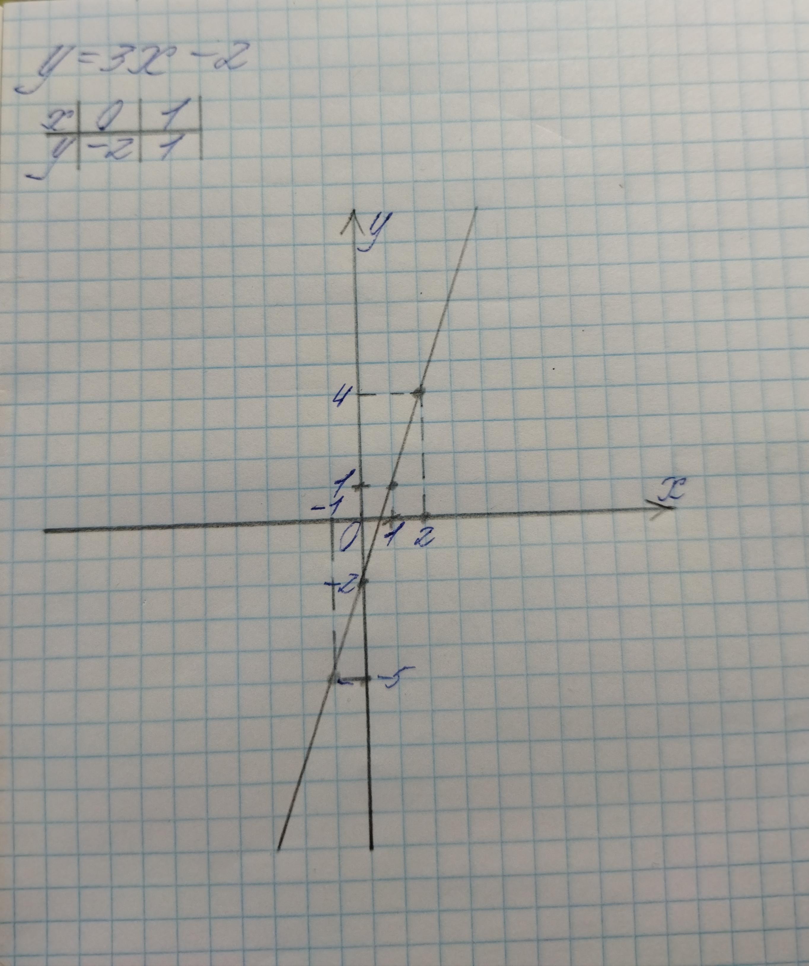 побудувати графік функції у=3х–2.