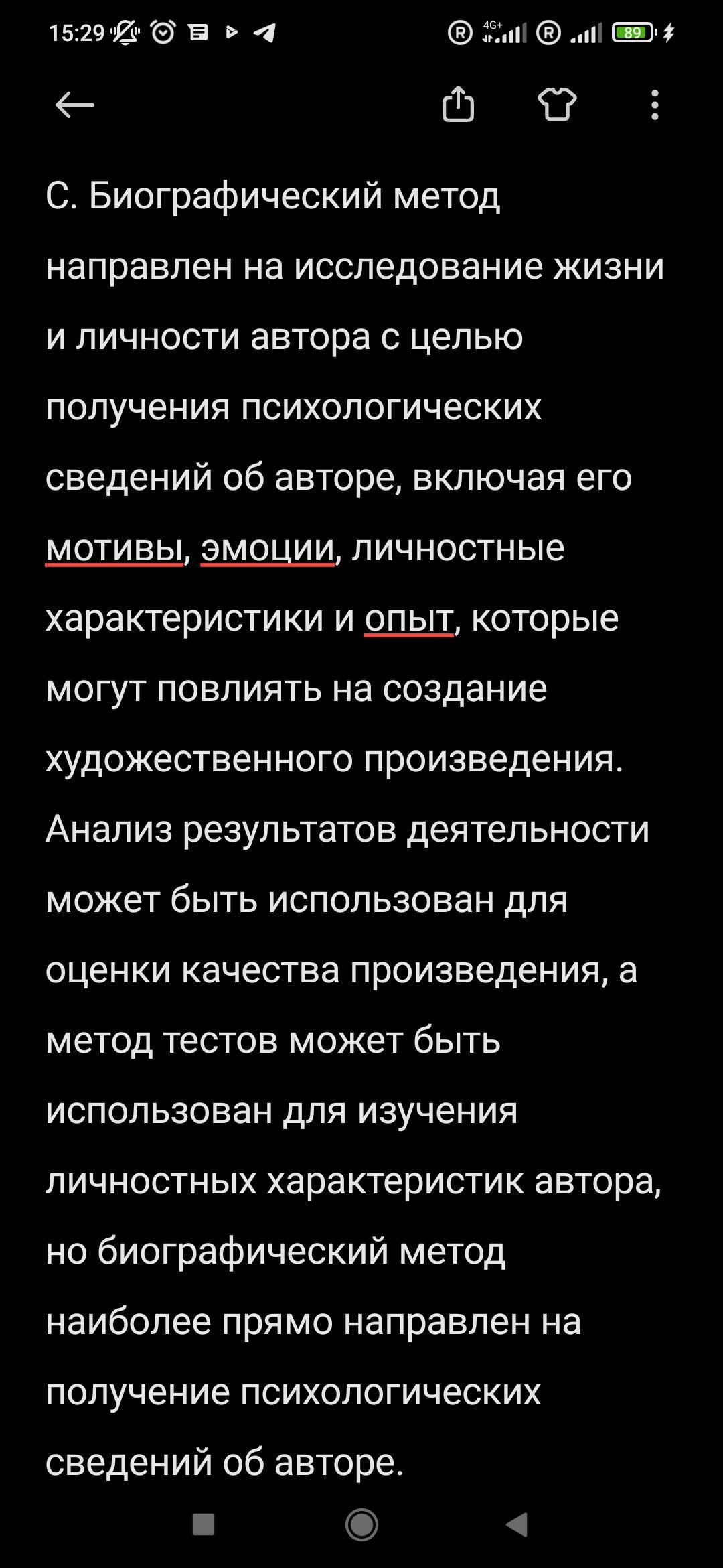 Какой из этих методов направлен на исследование текста художественного произведения с целью получения психологических сведений об авторе: