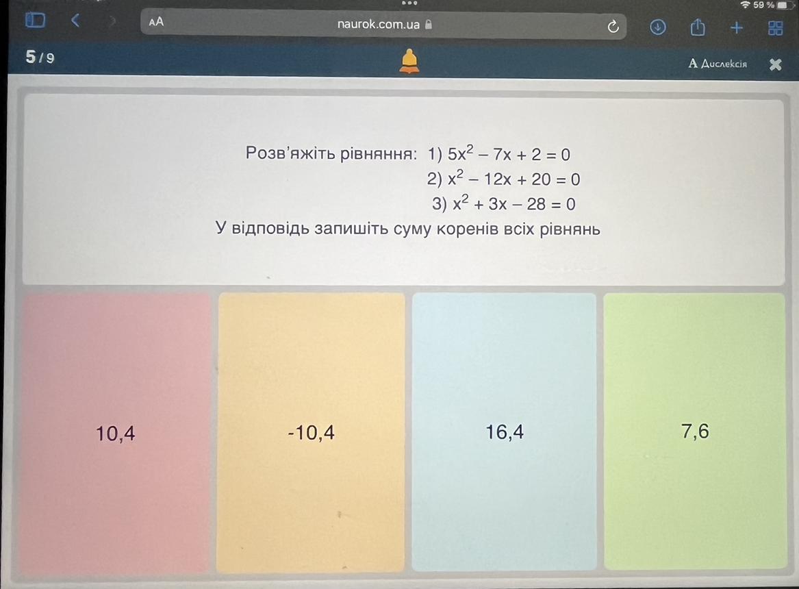 D = (-7)² - 4·5·2 = 49- 40=9=3²