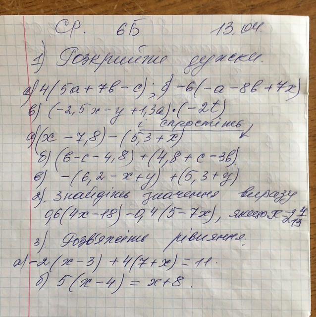в) -(6,2 - х + у) + (5,3 + у) = -6,2 + х - у + 5,3 + у = -0,9 + х