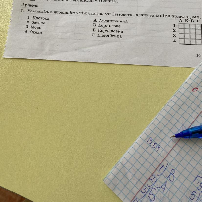 Установіть відповідність між частинами Світового океану та їхніми прикладами. Даю 10 балів